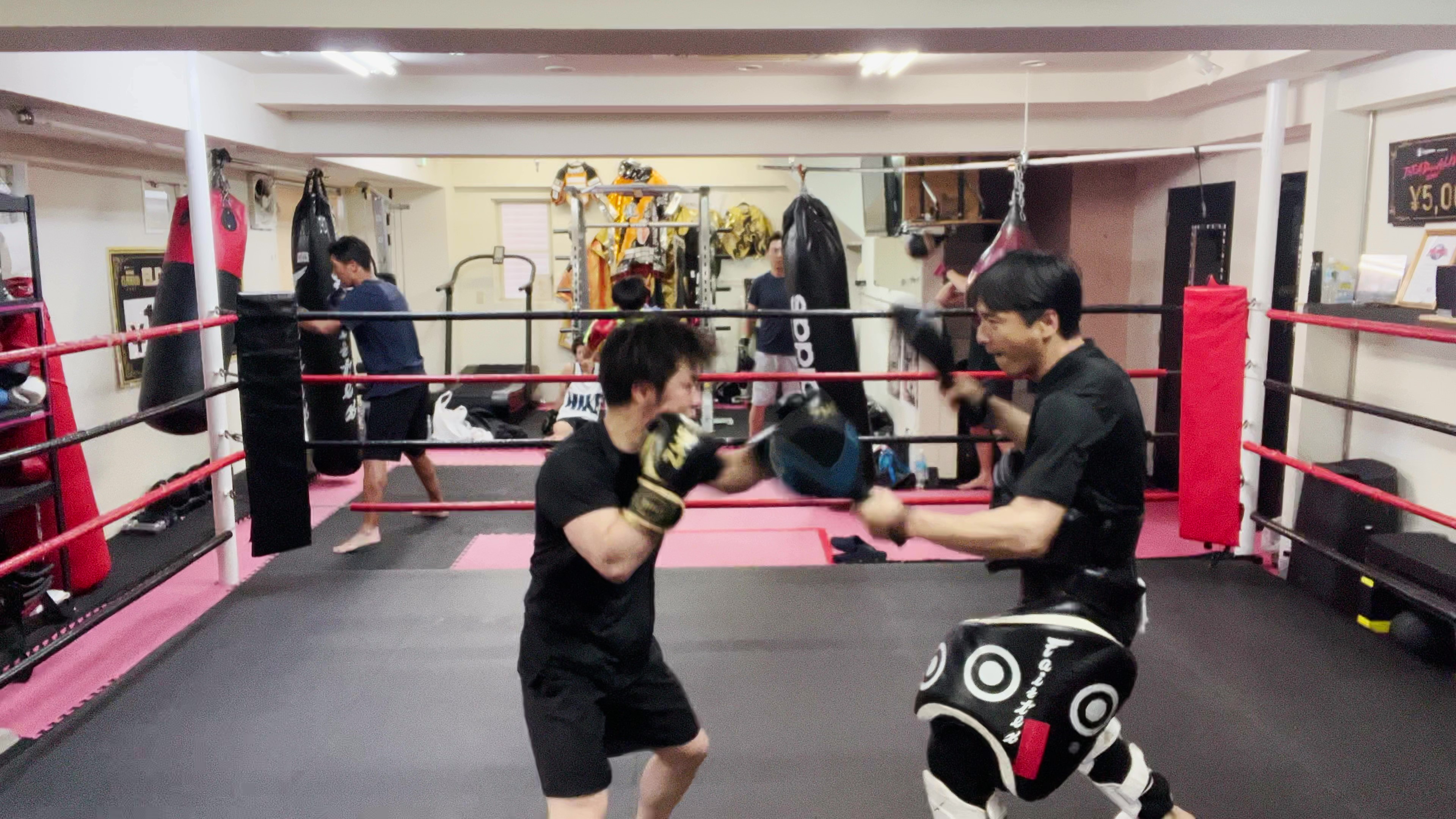 ●プロ選手同士でスパーリング、ミット打ち、サンドバック、サーキットトレーニングなどを行います。